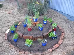 The Herb Spiral offers a variety of niche's for the herbs, at the top in the