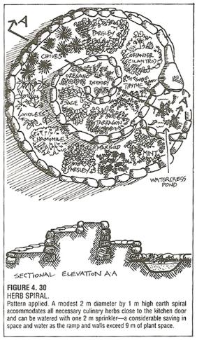 planted outside the spiral. While the herbs are growing to full size, some of the