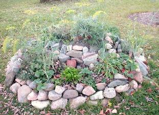 encloses soil in which many species of herbs are planted. The rock warms and